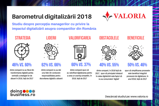 Studiu Valoria: In 2018, 6 din 10 companii nu au la nivelul conducerii cunostintele necesare pentru a dezvolta un model digital de afaceri