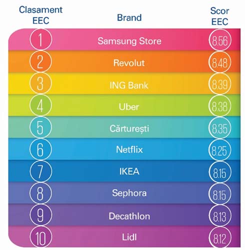Cele mai bune branduri in 2019 in Romania conform scorului privind Excelenta in livrarea Experientei Clientilor